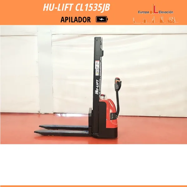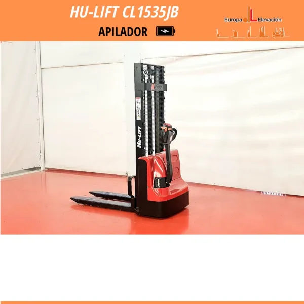 FRENO ELECTROMAGNÉTICO. BOTÓN TORTUGA. CARGADOR INCORPORADO. Apilador eléctrico HU-LIFT. Capacidad: 1.500 kg. Mástil dúplex, 3.500 mm. Respuesta rápida, eficiencia y muy buena maniobrabilidad Ref: HULIFT. Modelo: CL 1535-JB.