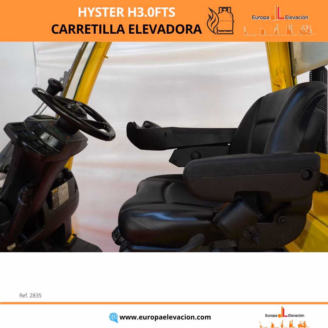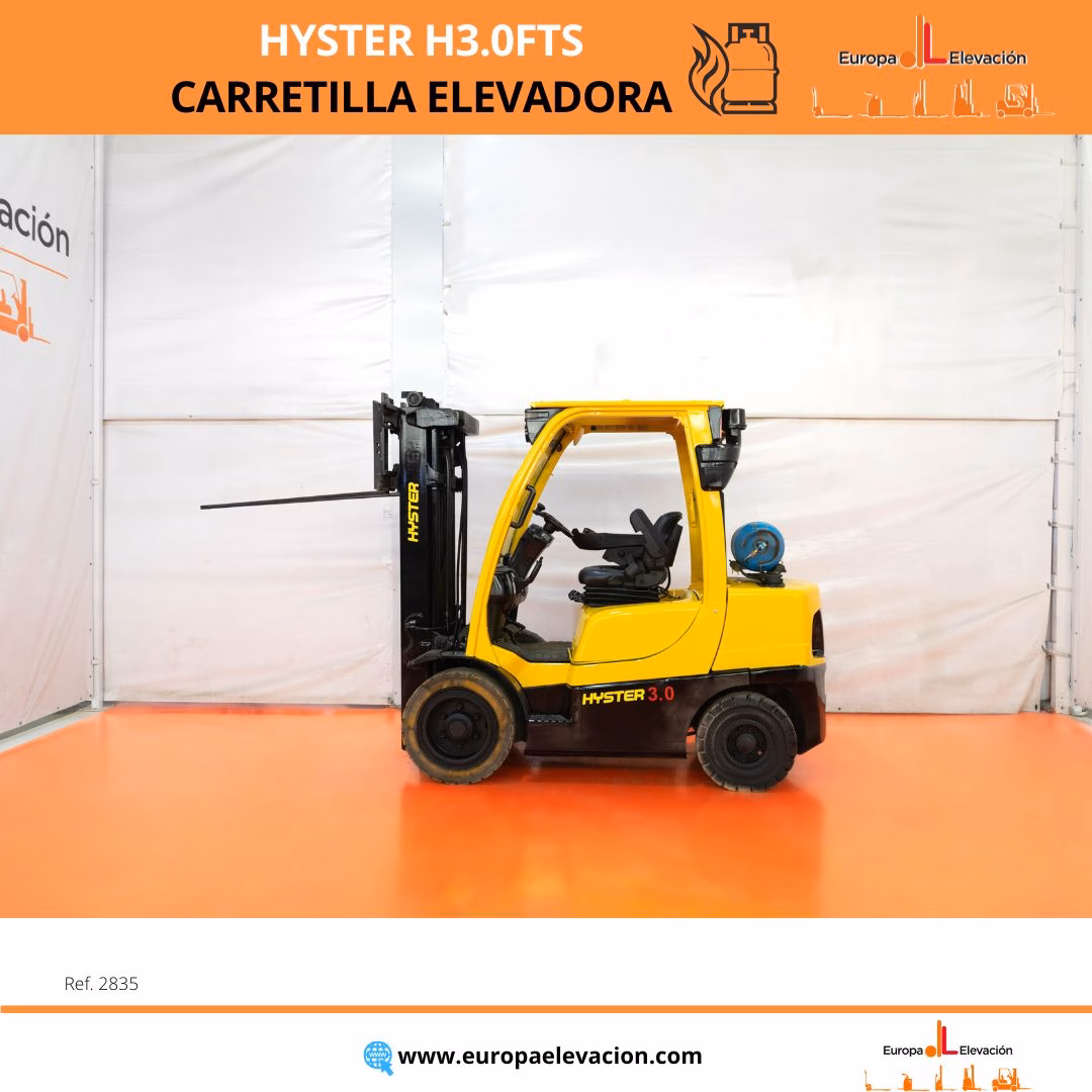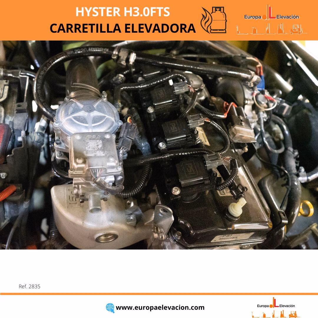 AÑO 2017. LUNA DELANTERA. Carretilla elevadora gas HYSTER. Capacidad: 3.000 kg. Mástil tríplex con elevación libre y desplazador, 4.632 mm. Focos delanteros led. Respuesta rápida, eficiencia y muy buena maniobrabilidad. Ref: 2835. Modelo:H3.0FTS.